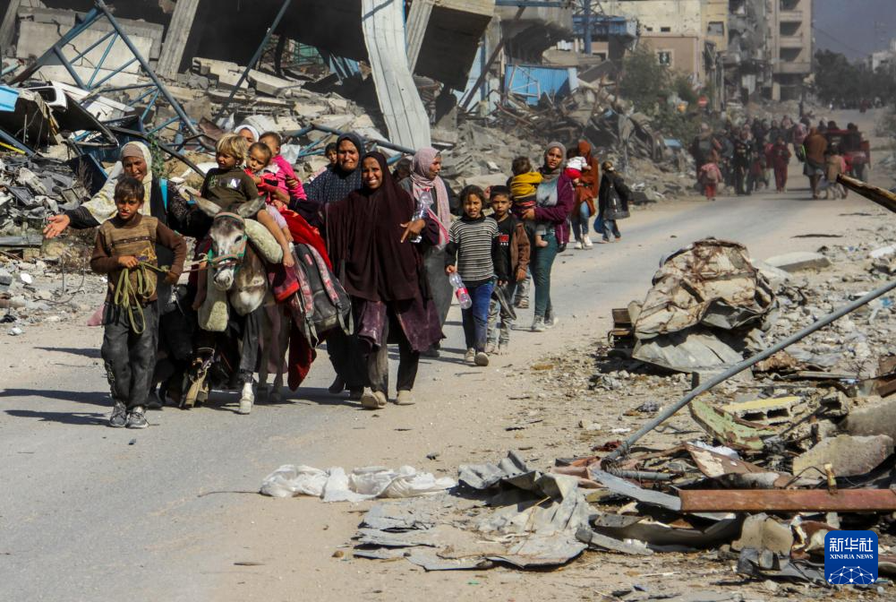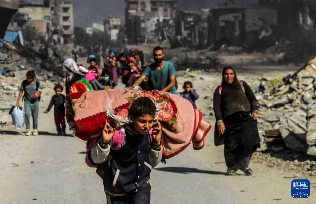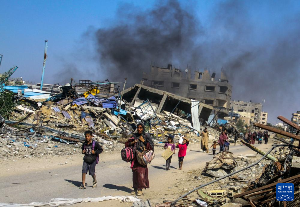 11月5日,巴勒斯坦民众从加沙地带北部拜特拉希亚镇逃到加沙城。