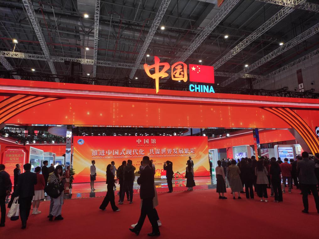 走进国家综合展,一抹亮丽的中国红首先映入眼帘。今年进博会中国国家馆主题为“推进中国式现代化,共谋世界发展繁荣”,以进一步全面深化改革为主线,集中展示中国经济社会发展取得的历史性成就,重点展示推进中国式现代化建设和推动高水平对外开放的最新成果。