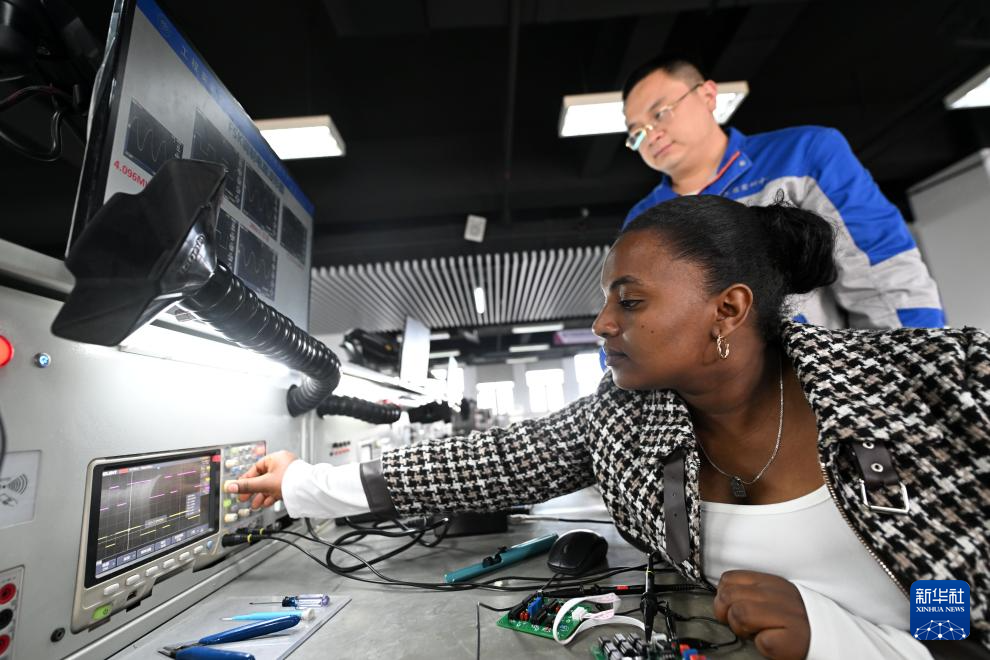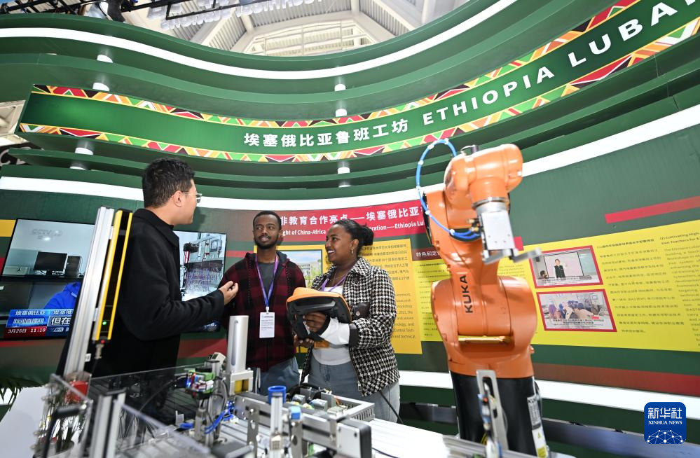 在刚刚闭幕的2024年世界职业技术教育发展大会上,凯特作为埃塞俄比亚鲁班工坊展位的工作人员,负责向参会嘉宾讲解演示现场的工业机器人工程应用培训平台,“这个工业机器人平台正是我曾经在埃塞俄比亚鲁班工坊使用过的设备,那里有着一流的硬件设备和教师。”凯特说,“感谢鲁班工坊,让我找到了自己的职业方向。”