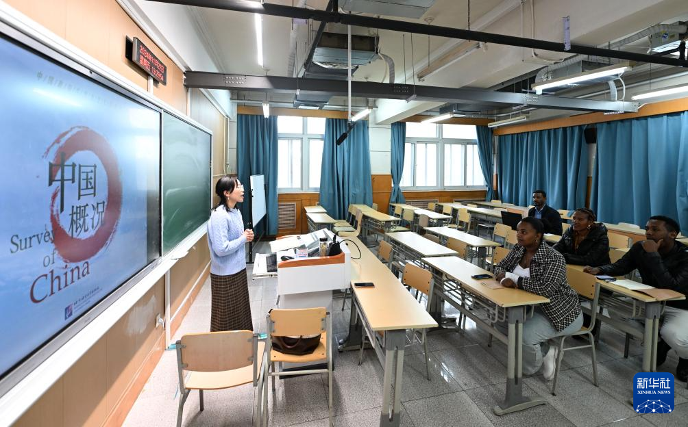 在天津职业技术师范大学,凯特和同学一起上中国概况课(11月22日摄)。