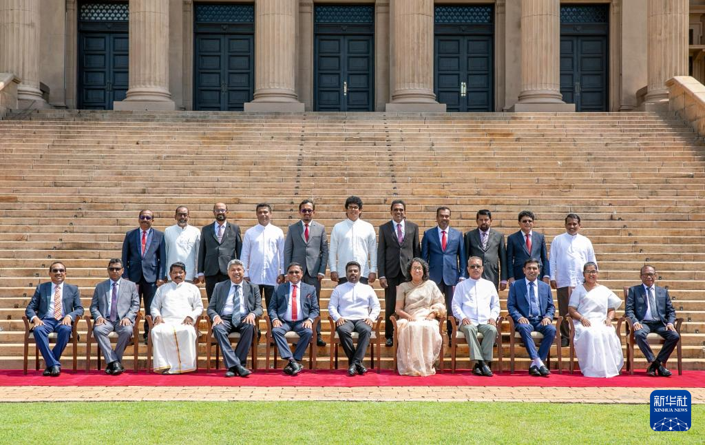 11月18日,在斯里兰卡科伦坡,斯里兰卡新内阁成员宣誓就职后在总统府前合影。