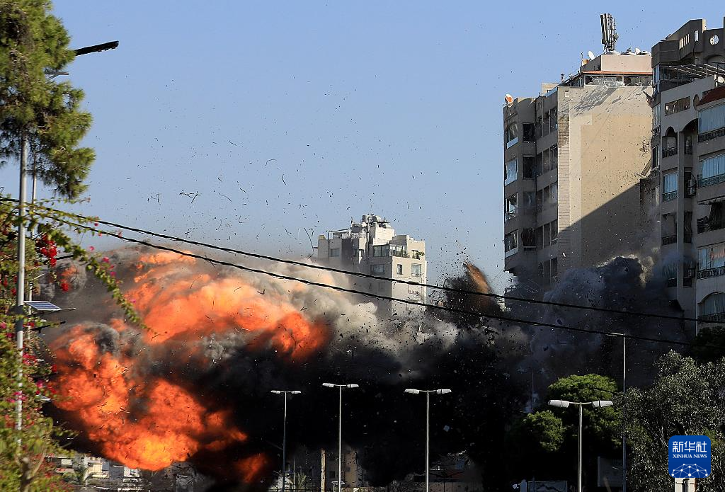 这是11月15日在黎巴嫩首都贝鲁特南郊拍摄的以军空袭现场。