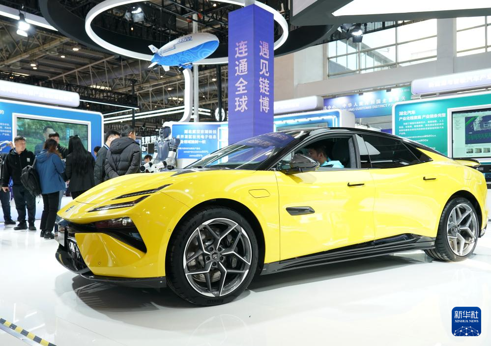 这是11月27日在第二届中国国际供应链促进博览会主宾省湖北展台拍摄的路特斯汽车。