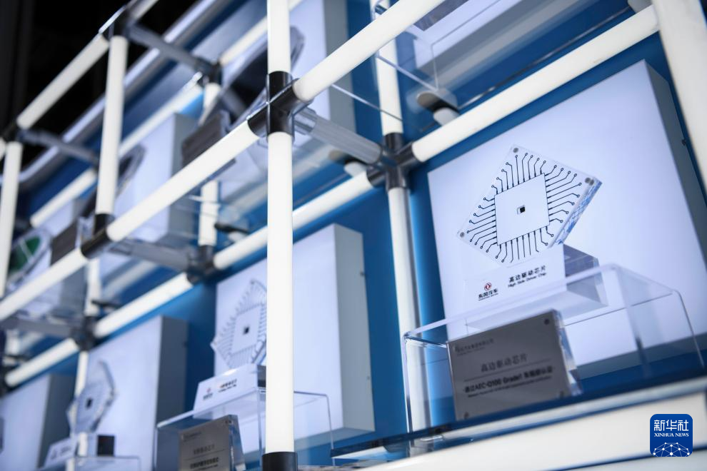 11月27日在第二届中国国际供应链促进博览会主宾省湖北展台拍摄的芯片产品。