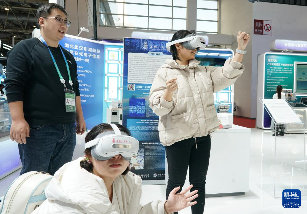 11月27日,参观者在第二届中国国际供应链促进博览会主宾省湖北展台体验VR眼镜。
