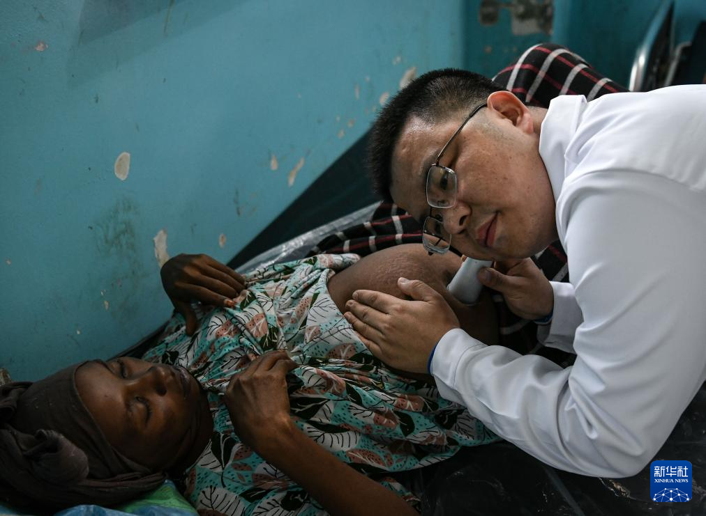 1月9日,在位于乍得首都恩贾梅纳的中乍友谊医院,中方妇产科医生为孕妇做检查。