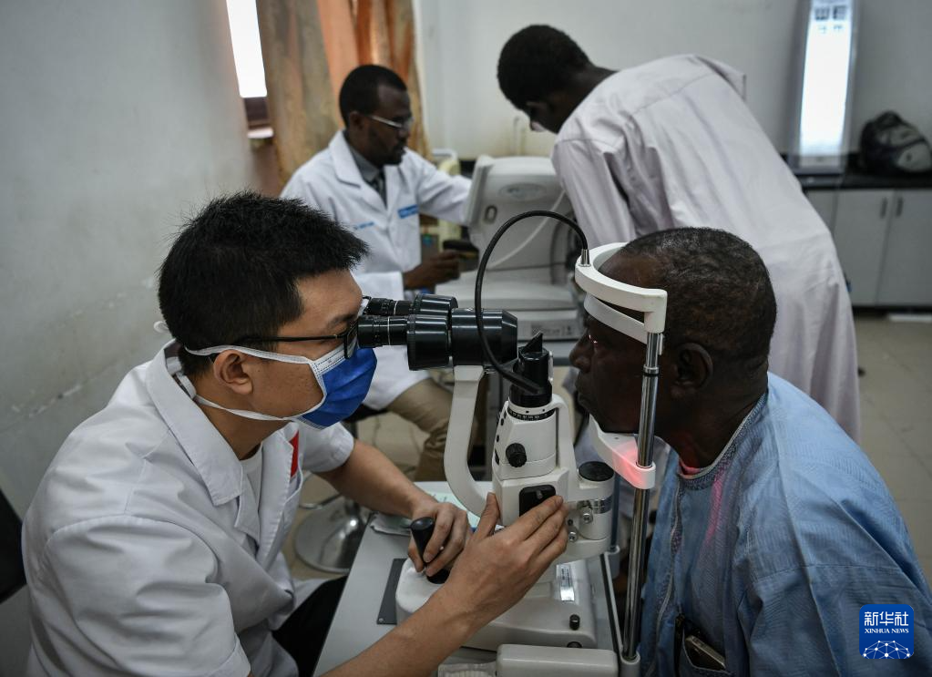 1月9日,在位于乍得首都恩贾梅纳的中乍友谊医院,中方眼科医生为患者做裂隙灯检查。