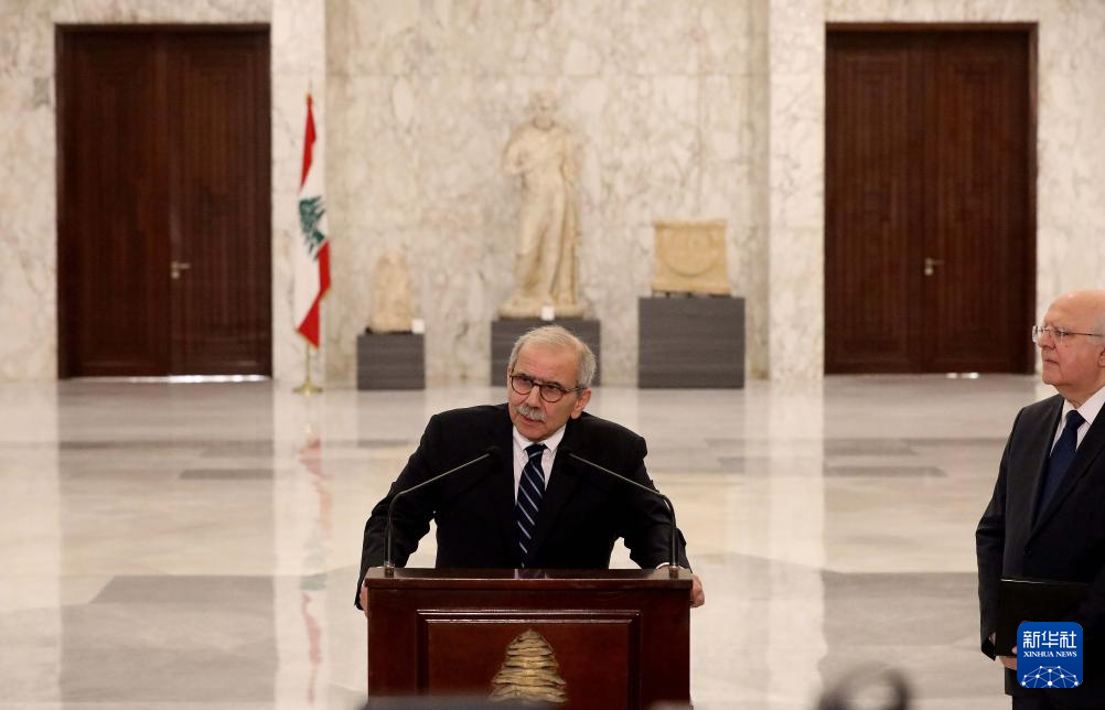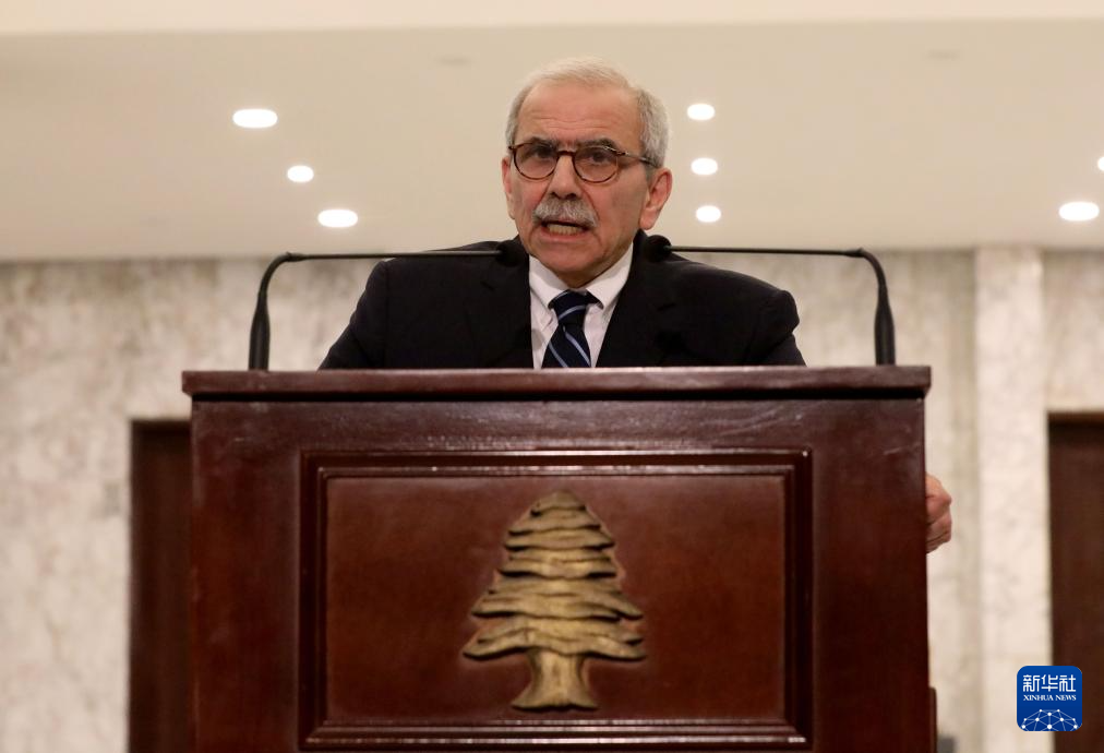 1月14日,黎巴嫩新任总理纳瓦夫·萨拉姆在首都贝鲁特发表讲话。新华社发(比拉尔·贾维希摄)