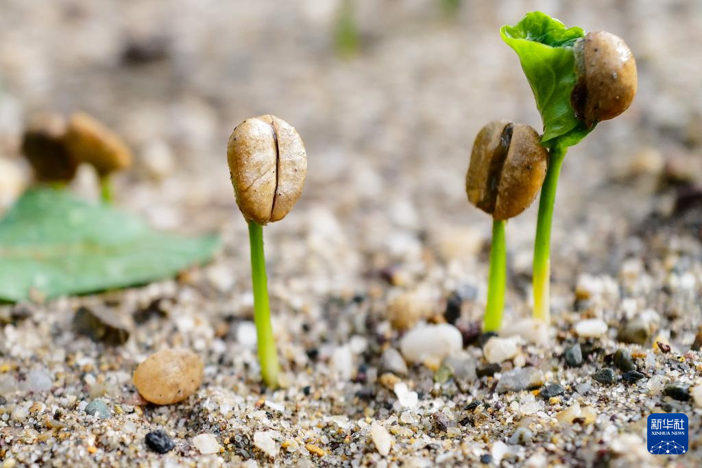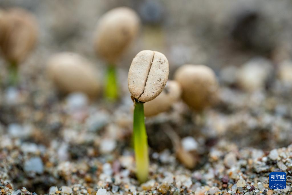 这是在云南省普洱市思茅区白沙坡咖啡试验示范基地拍摄的发芽的咖啡种子(1月8日摄)。新华社记者 胡超 摄pagebreak