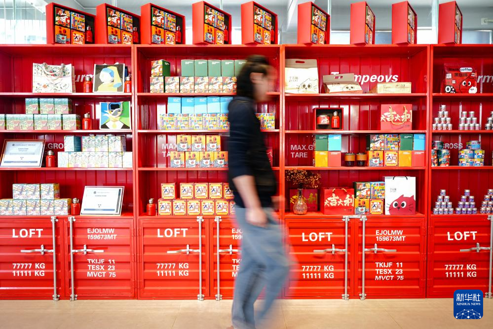 在云南省普洱市一家咖啡馆,店员从店内陈列着各类咖啡相关产品的货架前走过(1月9日摄)。新华社记者 孙瑞博 摄