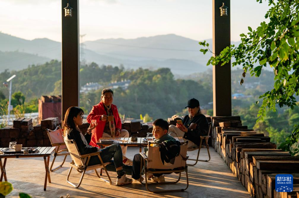 顾客在位于普洱市思茅区大开河梅子咖啡庄园享受休闲时光(1月7日摄)。新华社记者 陈欣波 摄pagebreak
