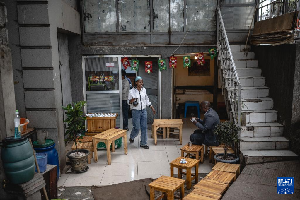 市民在埃塞俄比亚首都亚的斯亚贝巴一处街边咖啡店喝咖啡(1月8日摄)。新华社记者 王冠森 摄pagebreak