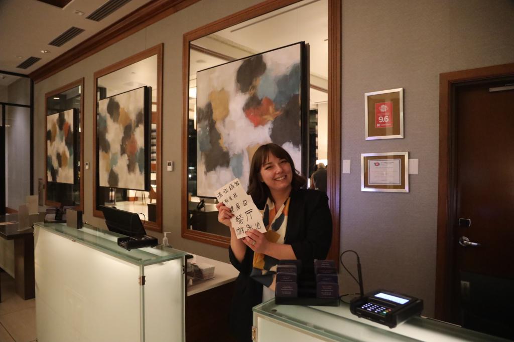 “请您稍等”“请联系我”……在中国学生们入住的酒店,前台工作人员谢伊·马丁提前准备了厚厚一叠中文指引卡片,让很多第一次海外过年的中国小客人感到心里暖暖的。