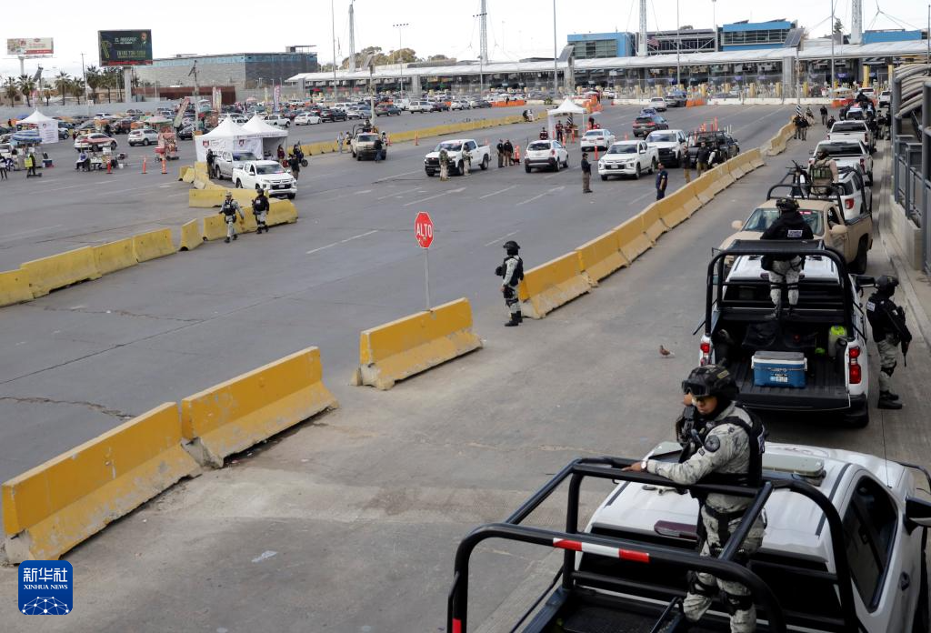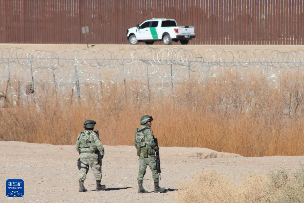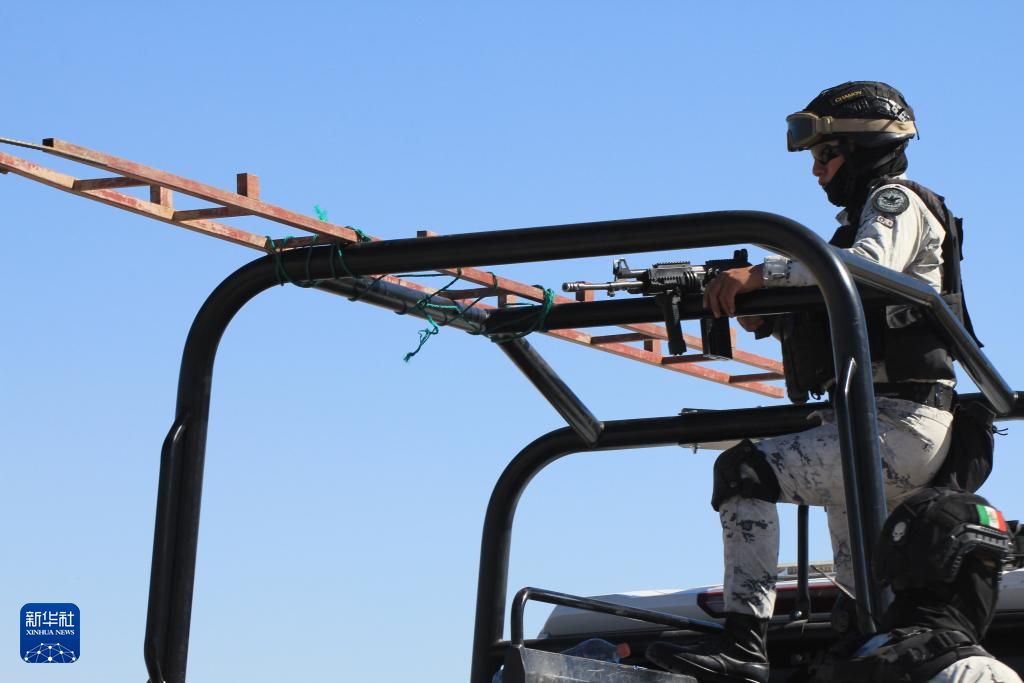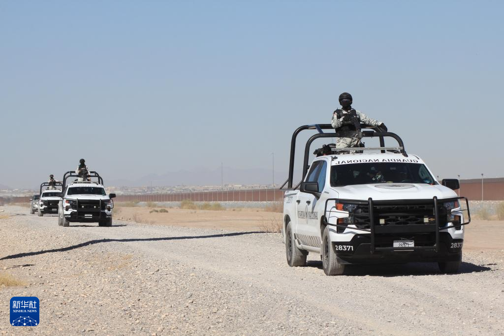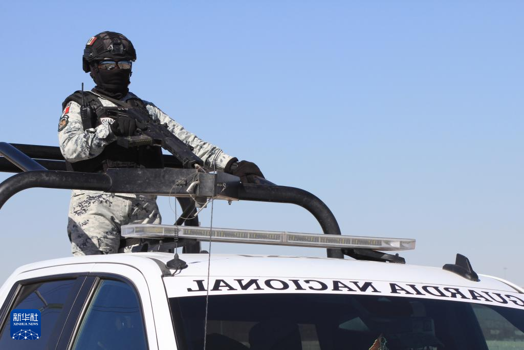 2月6日,在墨西哥奇瓦瓦州华雷斯市,墨西哥国民警卫队员在墨美边境执行任务。