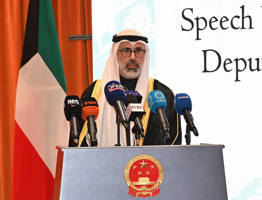 2月12日,在科威特哈瓦利省,科威特外交部副大臣杰拉赫亲王在活动上讲话。新华社发(阿萨德 摄)