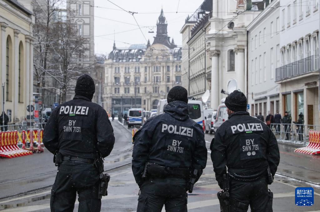 2月16日,在德国慕尼黑,警察在举办慕安会的酒店旁警戒。