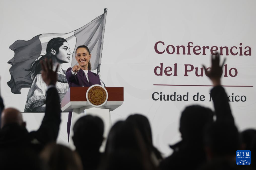 3月4日,在墨西哥首都墨西哥城国家宫,墨西哥总统辛鲍姆在新闻发布会上讲话。新华社发(弗朗西斯科·卡涅多摄)
