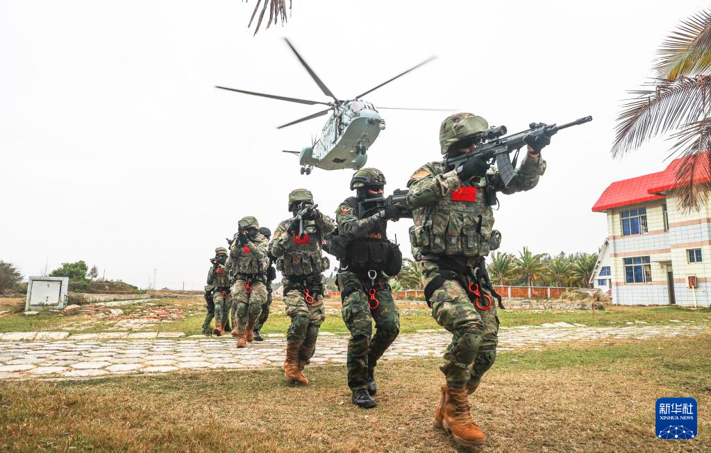 3月27日,在中泰“蓝色突击-2025”海军联合训练中,中泰双方队员进行机(滑)降科目训练。新华社发(王玮 摄)