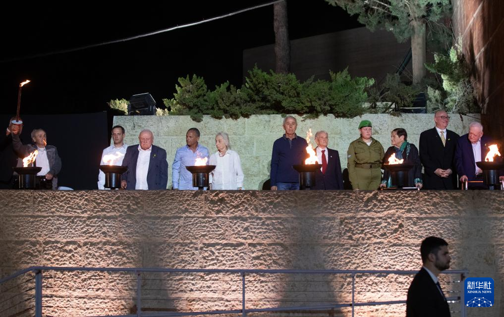以色列23日晚在位于耶路撒冷赫茨尔山的亚德瓦希姆大屠杀纪念馆举行大屠杀纪念日活动,悼念第二次世界大战中的犹太死难者。