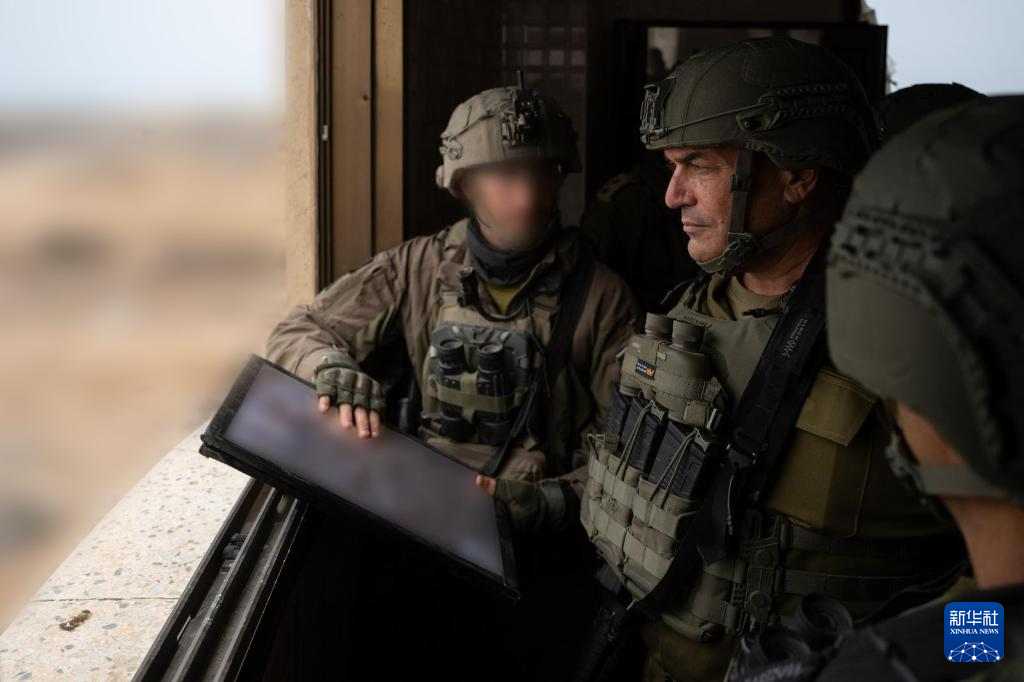 4月24日,以色列国防军总参谋长扎米尔(前左二)视察位于加沙地带南部的以军地面部队。