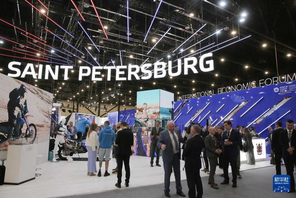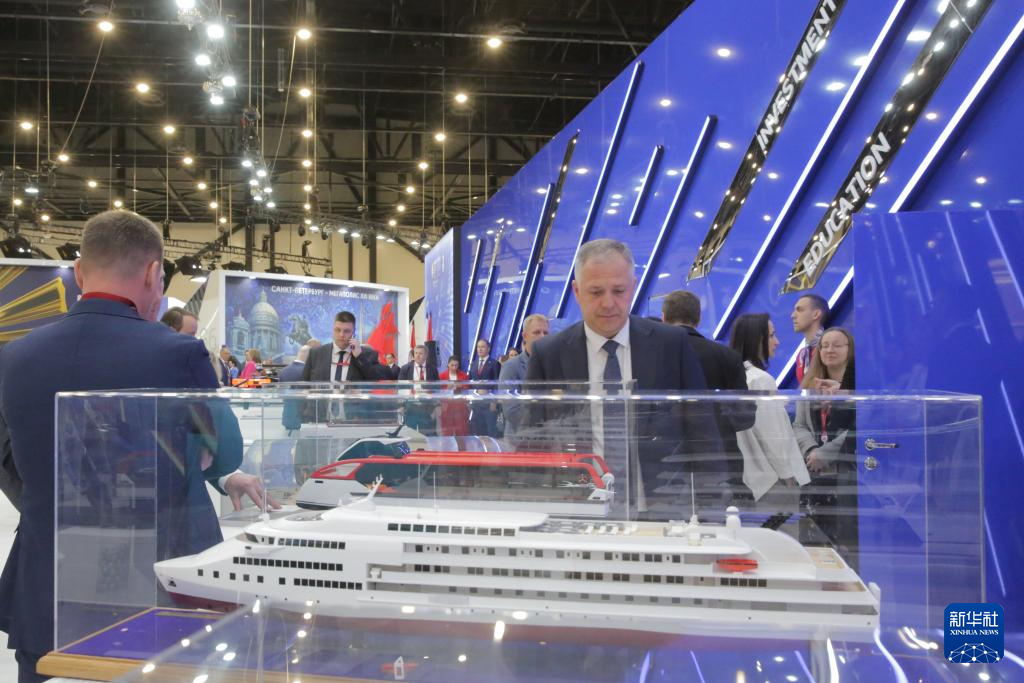 6月20日,人们在俄罗斯圣彼得堡国际经济论坛的展厅内参观。