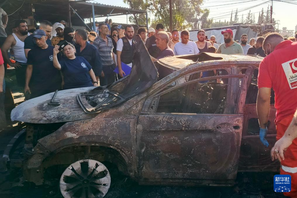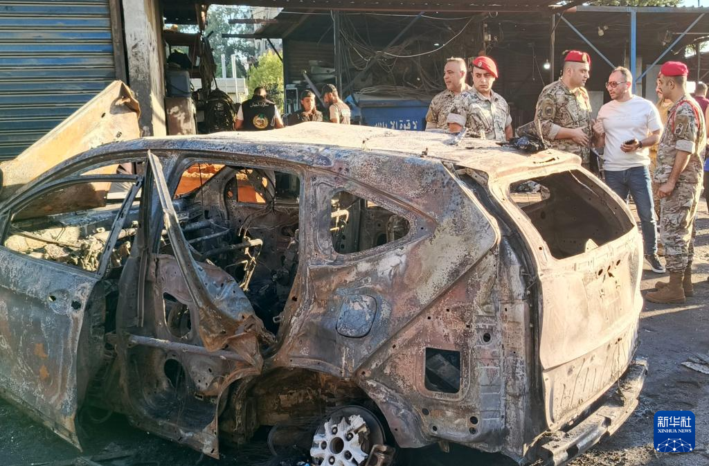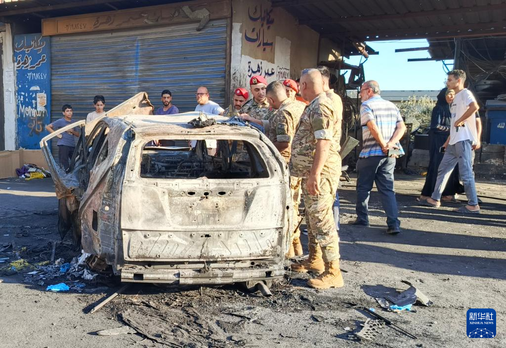 7月8日,人们在黎巴嫩北部城市的黎波里查看被以色列袭击的车辆(手机照片)。新华社发(哈立德·哈巴什提摄)