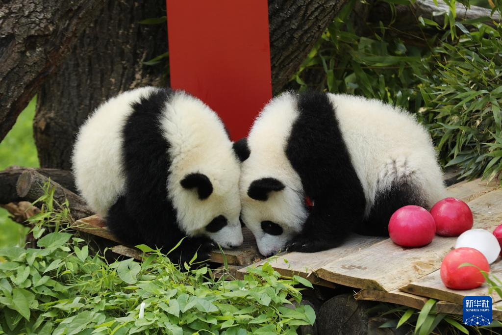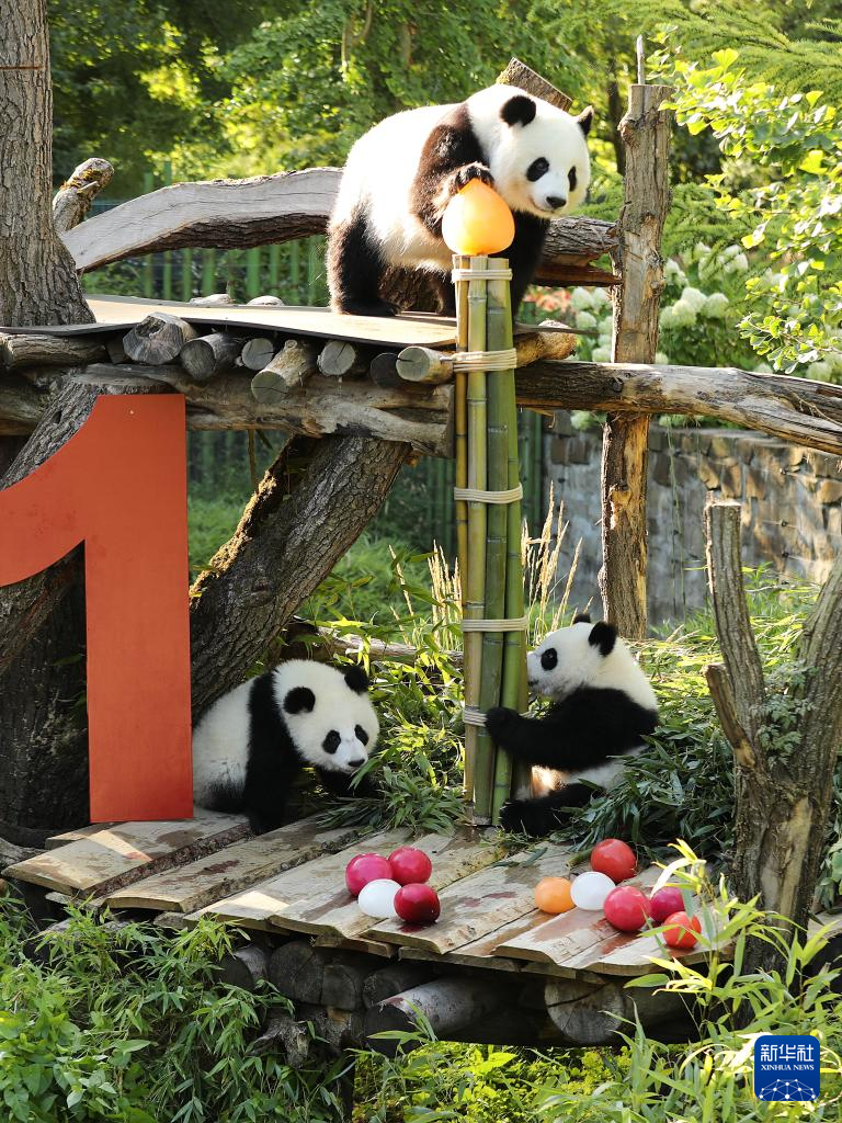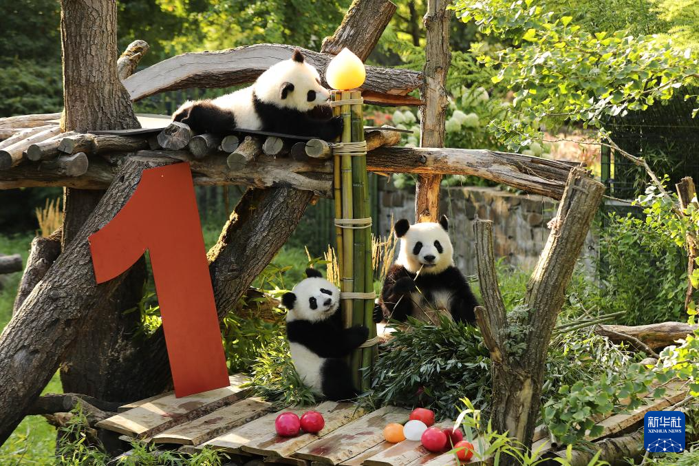 新华社柏林8月22日电(记者褚怡)在德国出生的第二对大熊猫双胞胎“梦好”和“梦甜”22日迎来一岁生日。