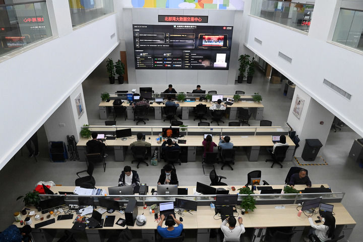 中国—东盟信息港股份有限公司员工在工作(2023年12月12日摄)。新华社记者 陆波岸 摄