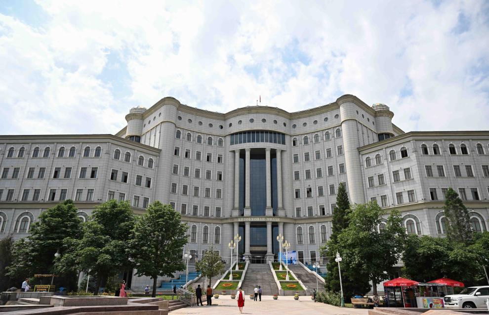 这是5月29日在塔吉克斯坦首都杜尚别拍摄的塔吉克斯坦国家图书馆。新华社记者 李任滋 摄