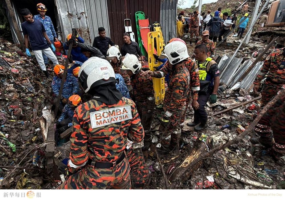 9月15日,救援人员在马来西亚沙巴州的受灾现场搜救。