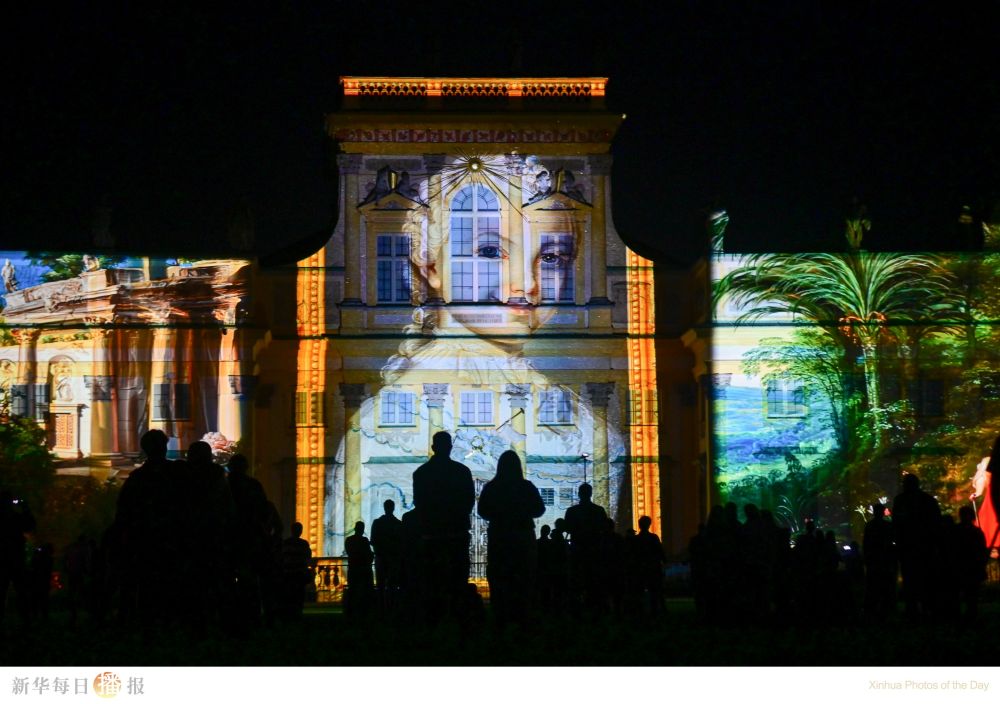 9月12日,在波兰华沙,人们观看通过人工智能技术呈现的“皇家藏画展”光影秀。