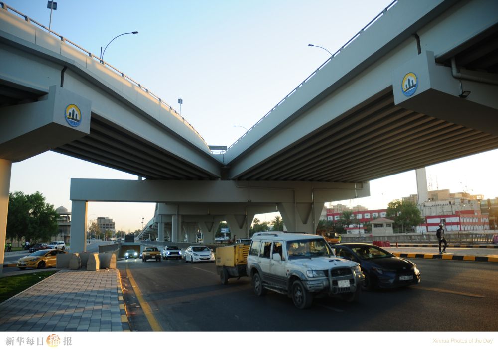 9月15日,车辆通过位于伊拉克首都巴格达的尼苏尔立体交通枢纽。