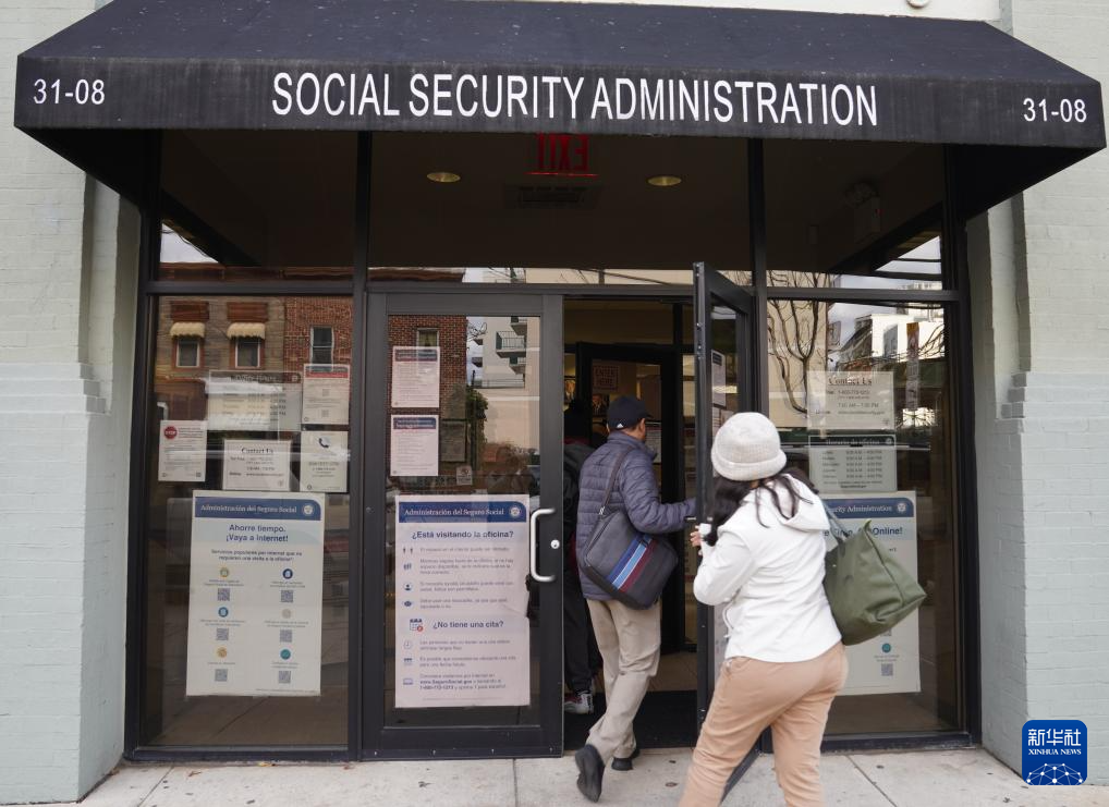 10月31日,在美国纽约,人们走进一处社会安全局服务中心。