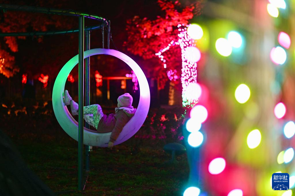 10月25日,在波兰华沙,游客参观波兰科学院植物园举办的“光之花园”灯光展。