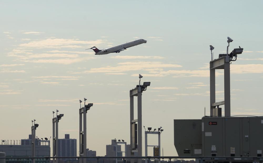 11月5日,一架客机从美国纽约肯尼迪国际机场起飞。 新华社记者 张凤国 摄