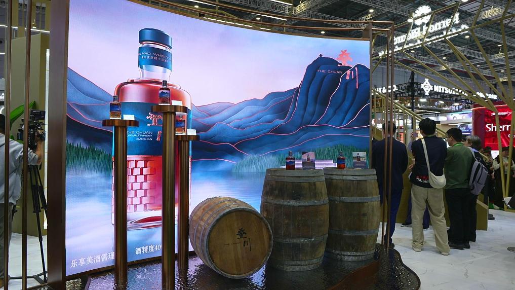 国际知名烈酒集团将首款中国原产威士忌叠川放在了展台“C位”。受访者供图