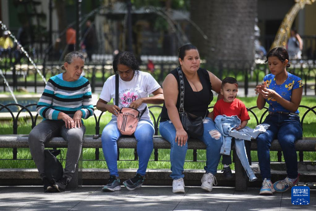 11月17日,在委内瑞拉首都加拉加斯的玻利瓦尔广场上,人们坐在长椅上休息。新华社发(马科斯·萨尔加多摄)