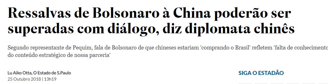 另一方面,中国的外交官们目前也认为波索纳罗发表的涉华争议言论,是可以通过对话和沟通而化解的。