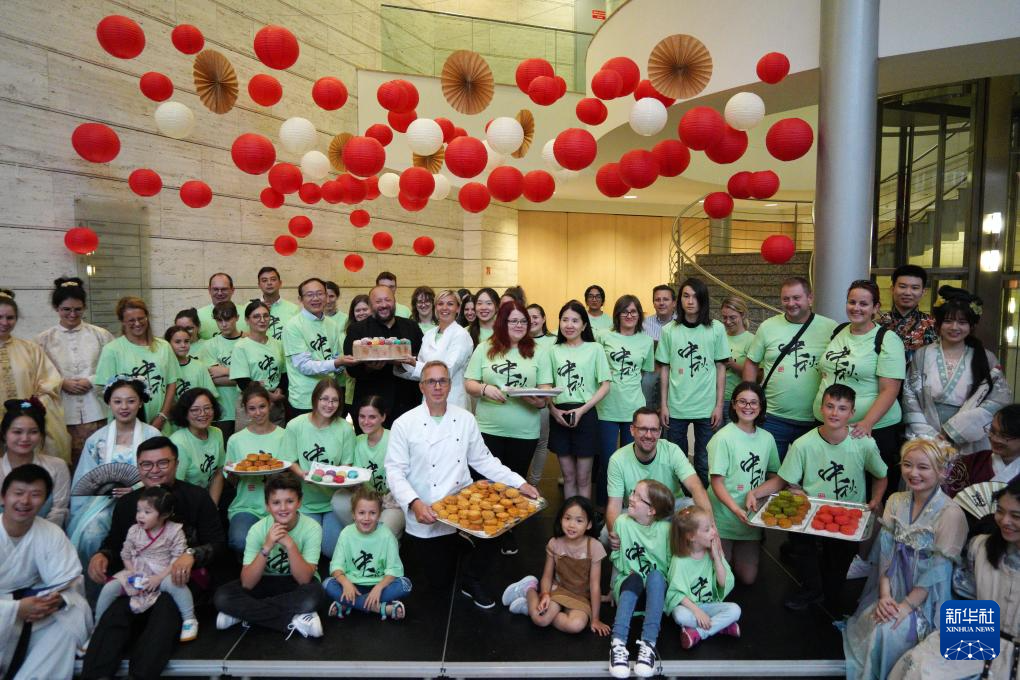 9月3日,人们在匈牙利德布勒森市克尔切伊文化中心参加“第四届匈牙利月饼制作坊”活动并合影。在此次活动上,500多名当地市民齐聚一堂,制作中秋月饼,体验中国传统文化。