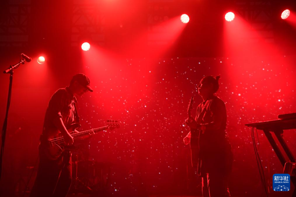 11月26日晚,“痛仰”乐队在美国纽约举行的“有朋自东方来”音乐节上表演。在2023年“有朋自东方来”音乐节上,来自中国的“痛仰”“五条人”“万能青年旅店”“房东的猫”4支乐队掀起了一股独具魅力的音乐热潮。