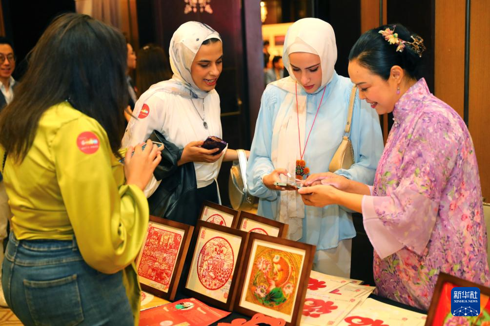 11月19日,人们在埃及开罗举行的粤港澳大湾区世界级旅游目的地推介暨“魅力广东”视觉展上了解剪纸。