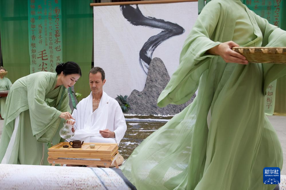 6月8日,表演者在西班牙马德里中国文化中心举行的“茶和天下·雅集”活动上进行表演。