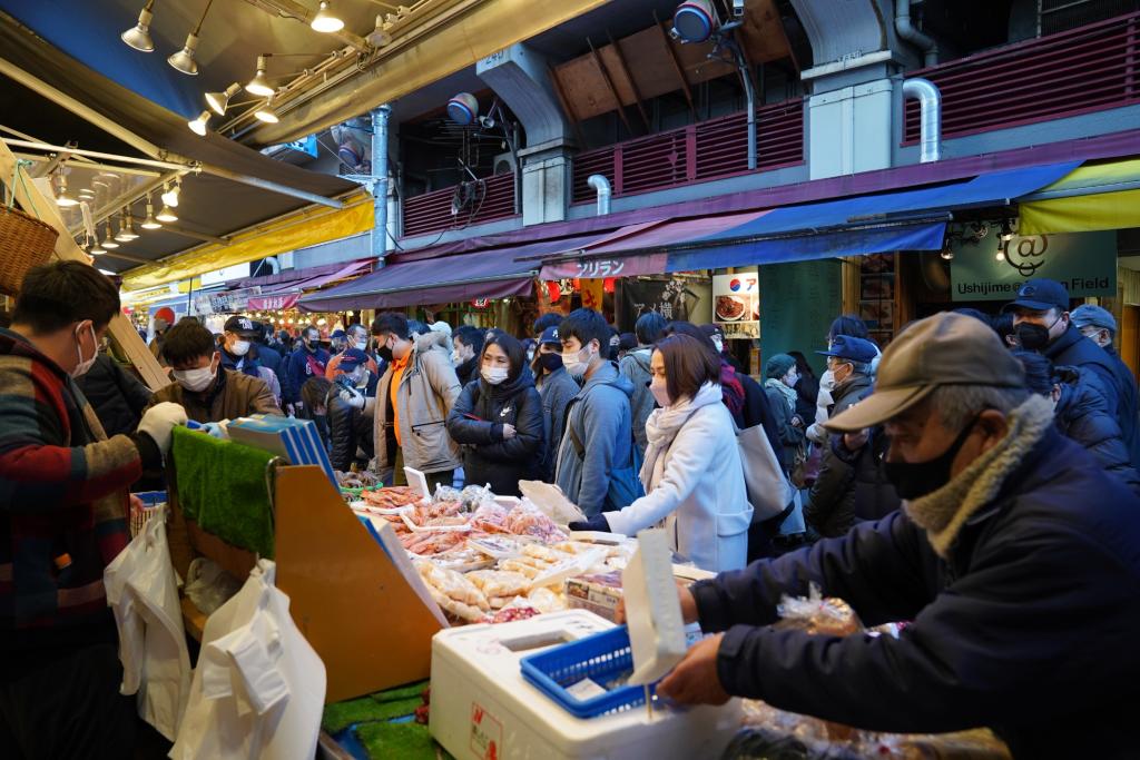 2021年12月28日,人们在日本东京阿美横町购买促销商品。新华社发(克里斯托弗·朱摄)