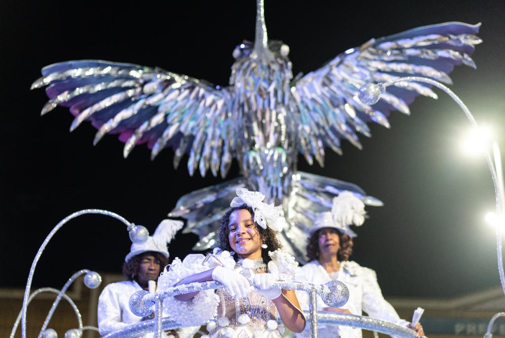 12月1日晚,在巴西里约热内卢桑巴之城,来自蜂鸟舞校的演员参加桑巴游行。新华社记者王天聪摄