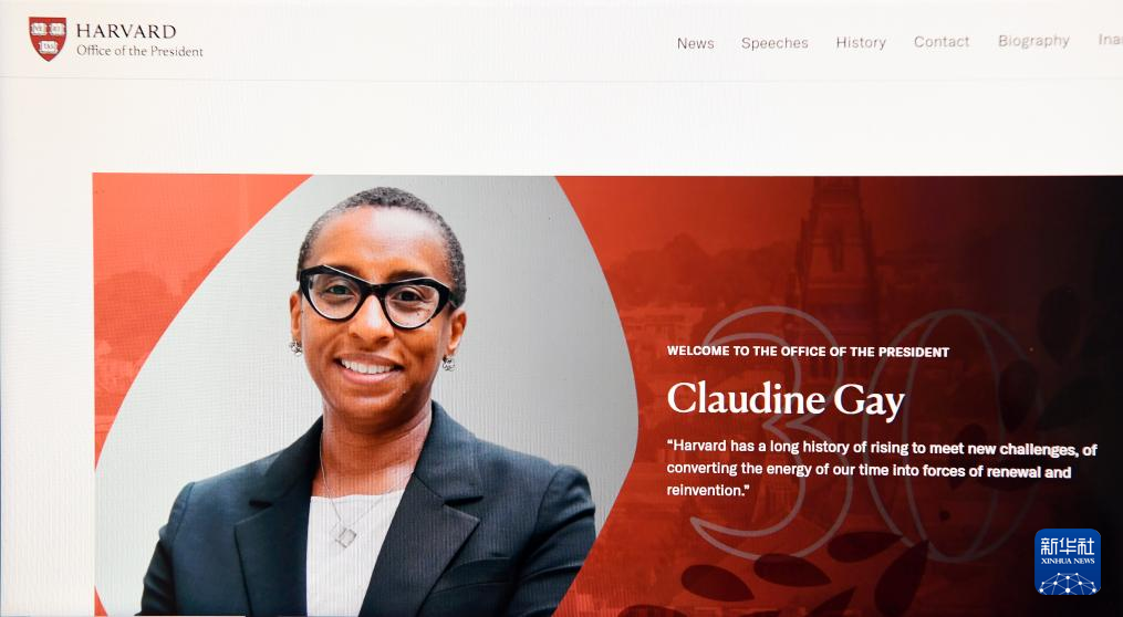 美国媒体1月2日报道,哈佛大学校长盖伊宣布辞职。这是1月2日拍摄的有盖伊照片的哈佛大学官网校长办公室页面。新华社记者李睿 摄