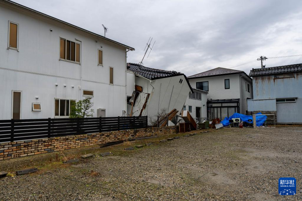 这是1月3日在日本石川县七尾市拍摄的一处因地震受损的房屋。