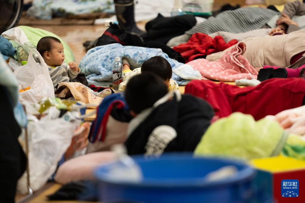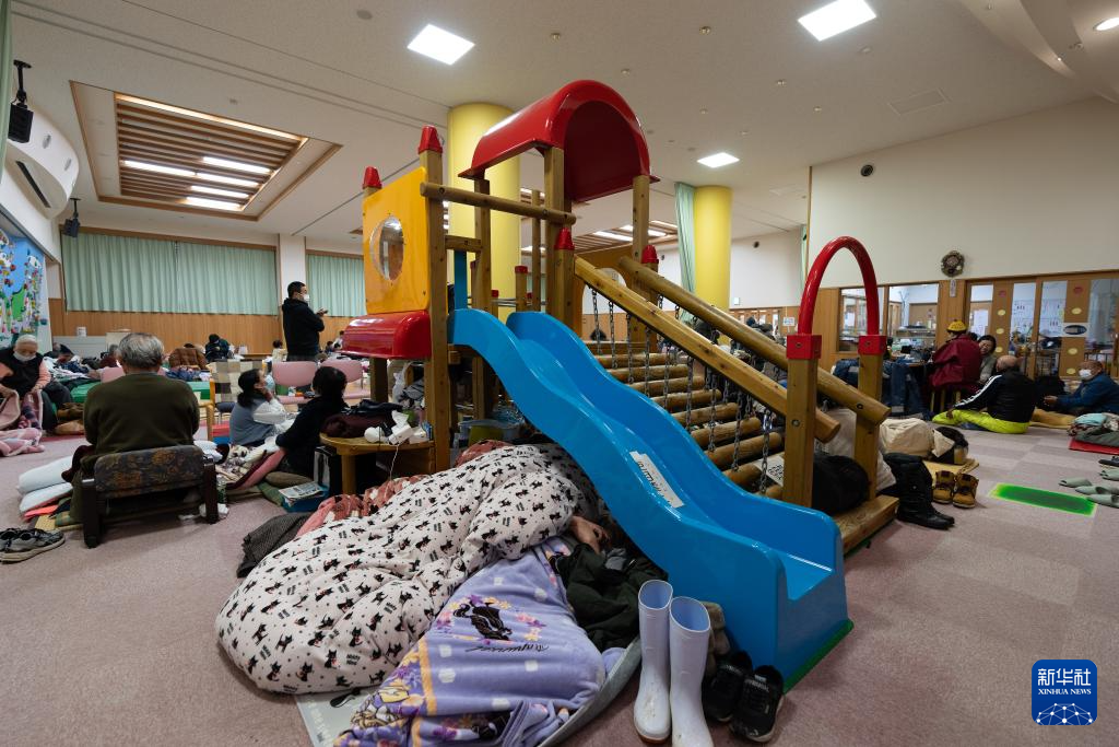 这是1月3日在日本石川县轮岛市一处容纳超700人的临时避难所内拍摄的儿童。
