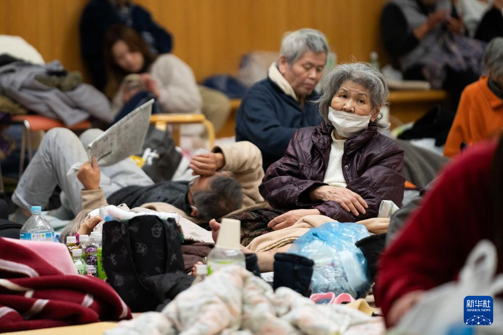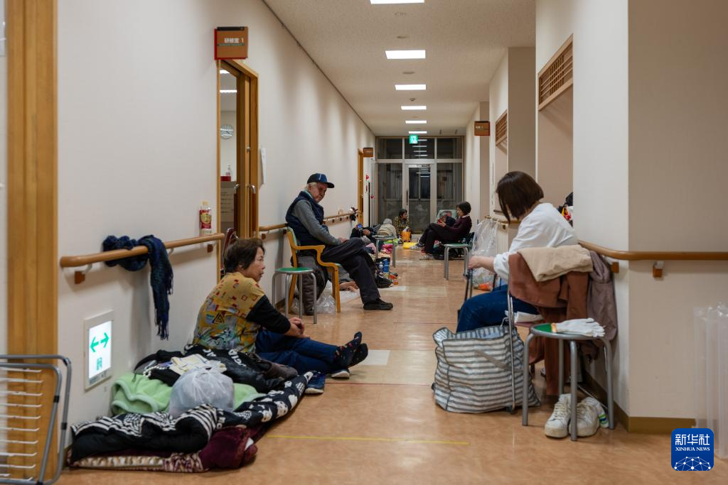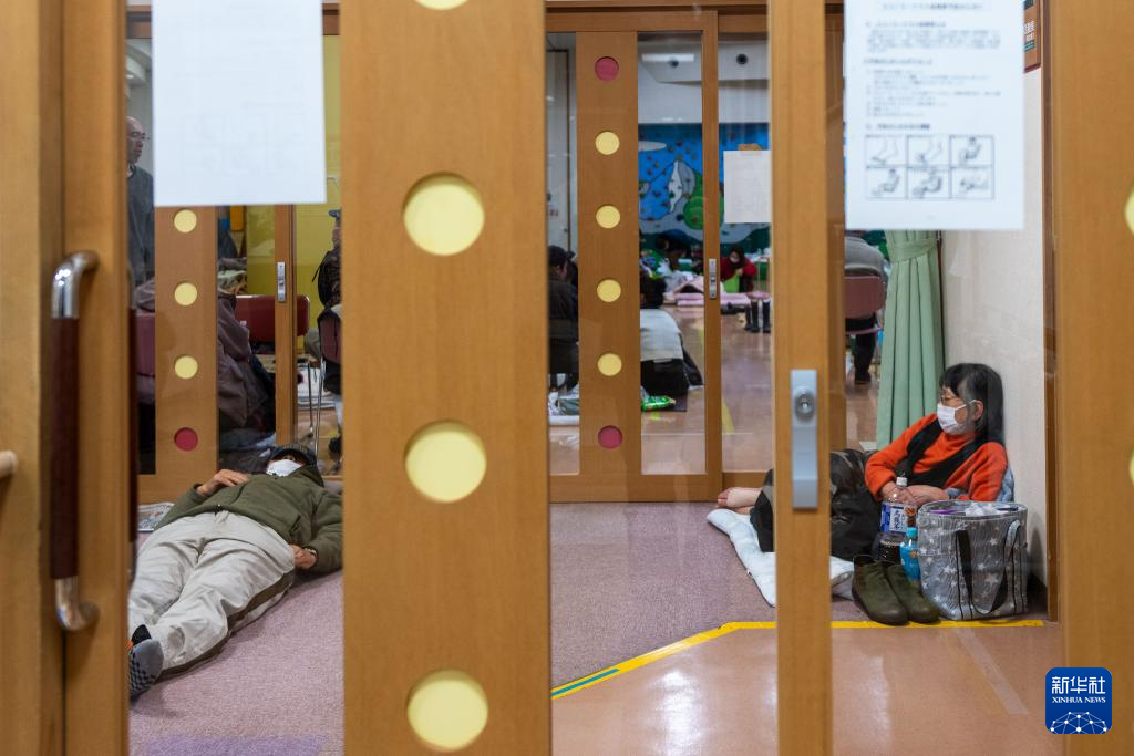 1月3日,人们在日本石川县轮岛市一处容纳超700人的临时避难所内休息。