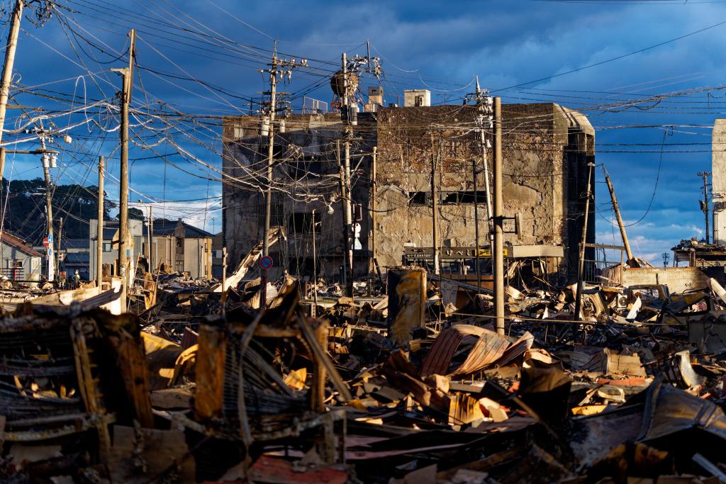 这是1月4日在日本石川县轮岛市拍摄的“轮岛早市”的废墟。新华社记者张笑宇摄