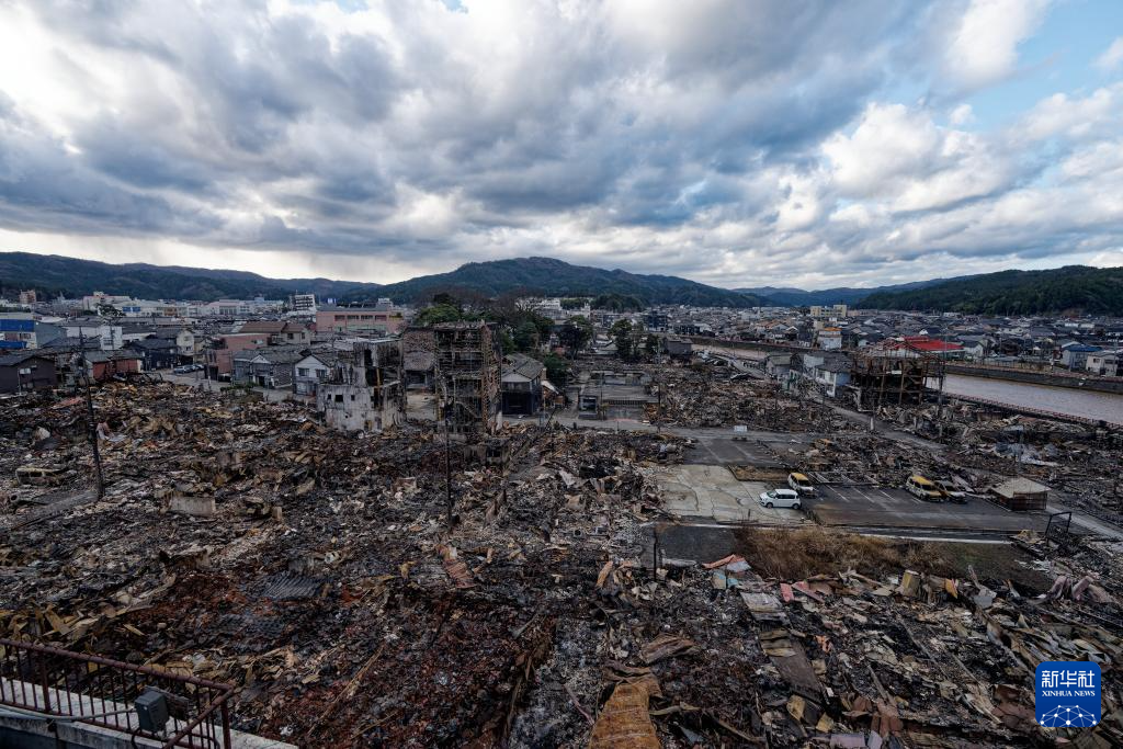 日本石川县轮岛市“轮岛早市”被地震引发的大火烧成废墟(1月4日摄)。